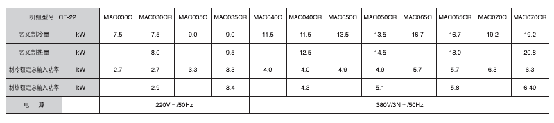 小型風冷冷水/熱泵機組整體系列 MAC-C/MAC-D