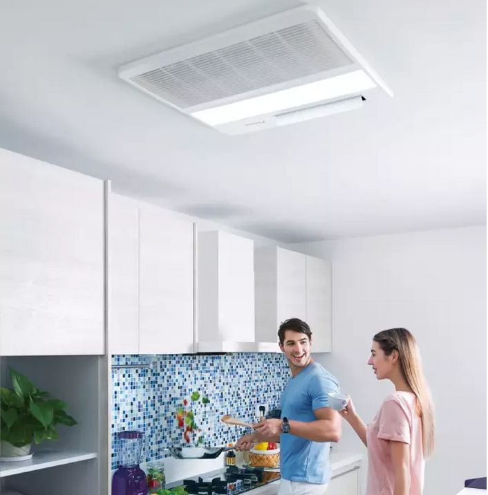 大金金制全效家用中央空調(diào)廚房專用空調(diào),專為廚房設(shè)計。超薄嵌入式內(nèi)機不占空間,