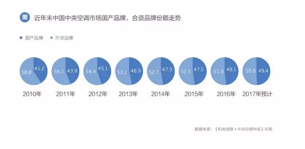 現在可以看出的是:國產品牌的競爭力愈來愈強。對于開篇提出的問題,筆者更傾向于后者。也更希望未來市場會向這個局面發展。中國工業制造亟需擺脫廉價制造的陳舊印象,中央空調行業也需要一場更加徹底的洗牌,重鑄目前中低端產品同質化嚴重的市場格局。